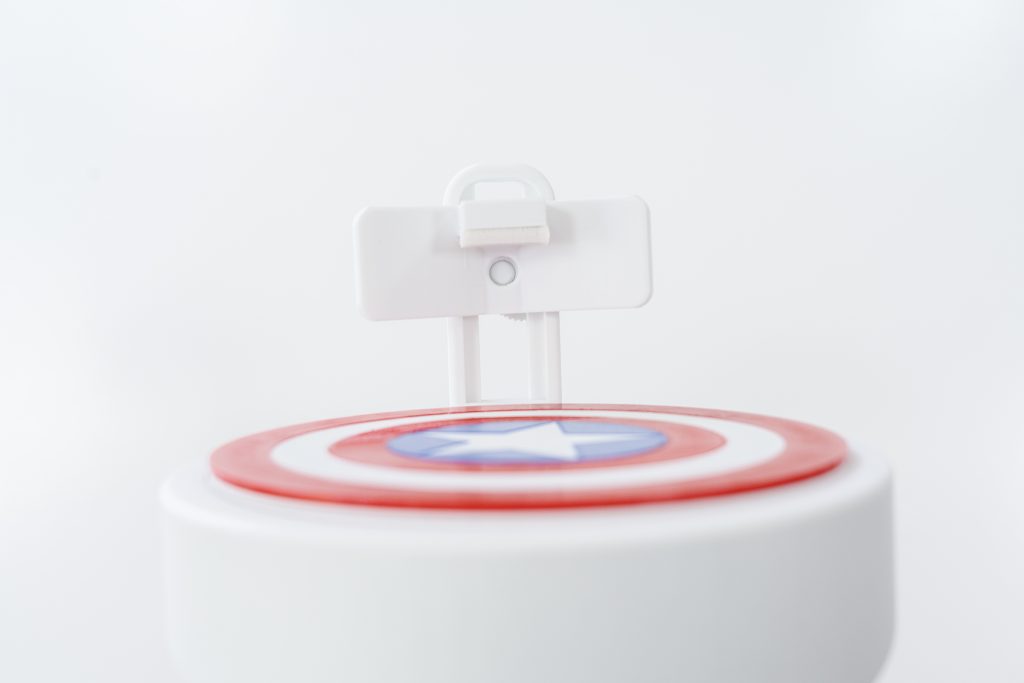 Durante la segunda visita que hicimos al centro para el testeo de algunos productos de apoyo que ya habíamos impreso, pudimos estar un rato con Santi y descubrir que es fan de Capitán América, así pudimos además de diseñar el elevador de plato con un diseño funcional para él, hacerlo también en base a sus gustos.
